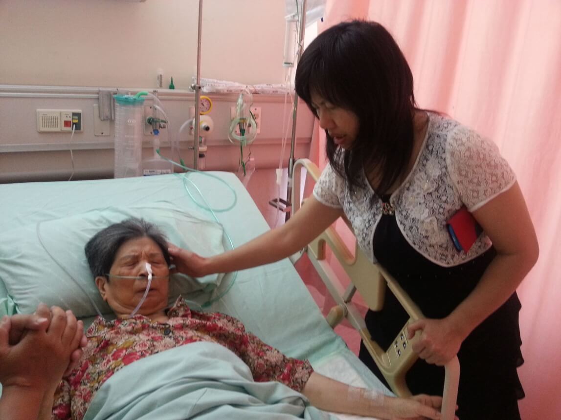 2013 – 07 – 01 霈恩(阿快)姊妹為婆婆施洗 神岡家教會霈恩姊妹關心妹妹的婆婆,因癌症擴散後失去求生意志,但在決志禱告後願意轉院接受治療。經大家繼續迫切代禱,使原來長期拜拜吃素的婆婆,終於在2013-7-1在病床上接受洗禮、聖餐、成為神的女兒。