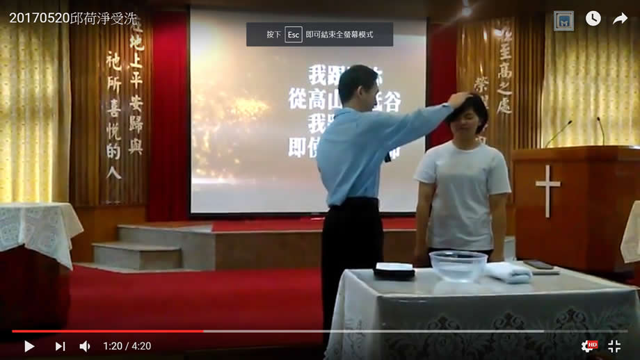2017 – 05 – 20 邱荷淨姊妹受洗 荷淨姊妹是政戰一年級學妹,與石開、雅玲傳道夫妻一同探訪,荷淨接觸信仰7年,今天願意在軍校生畢業聚會中公開承認信仰接受洗禮,祝福荷淨一生走在神為她預備的道路中,享受天父恩典與慈愛!