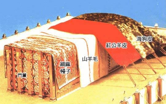 26:14 又要用染紅的公羊皮做罩棚的蓋;再用海狗皮做一層罩棚上的頂蓋。
